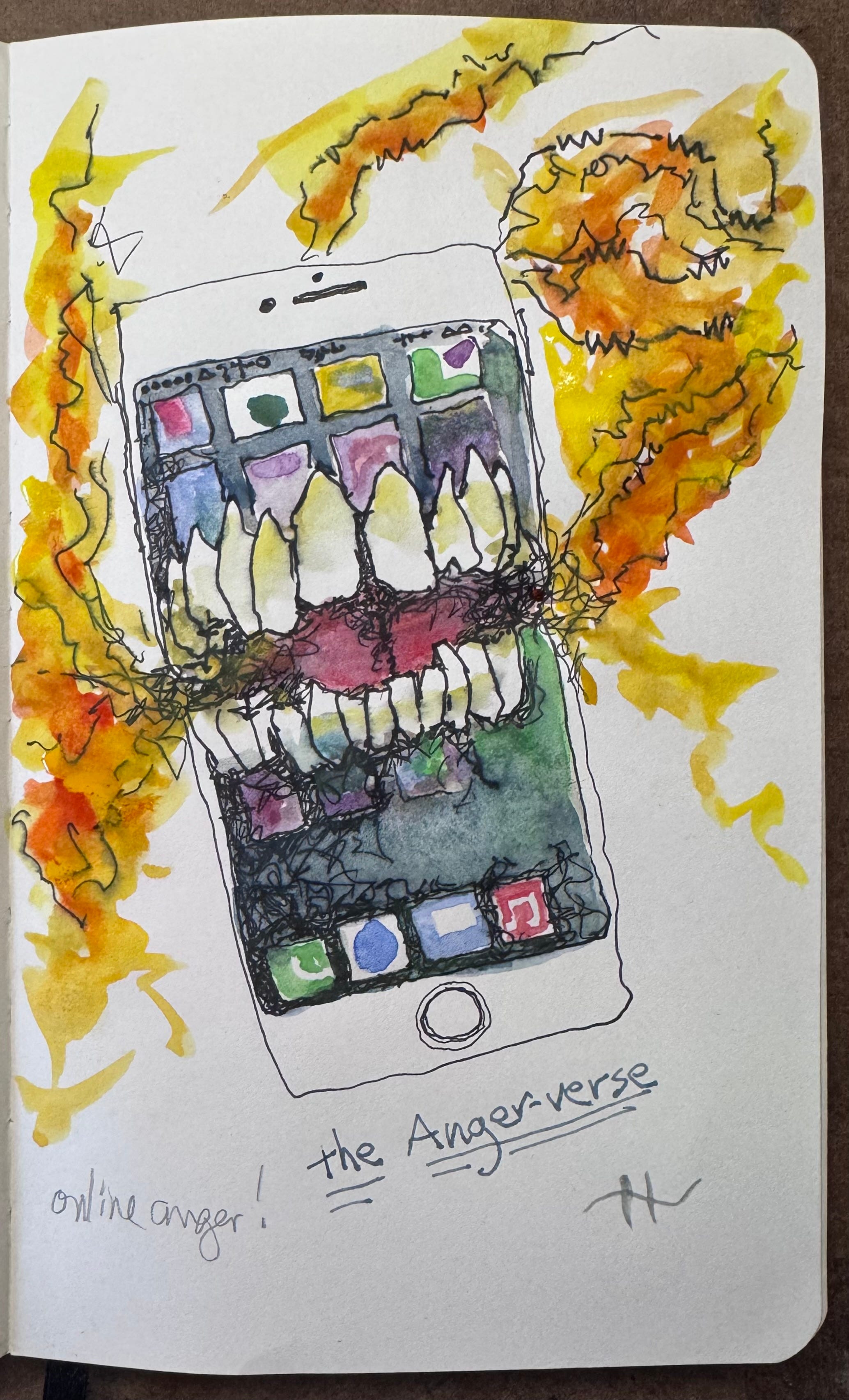 I did the ink a couple of years ago (note the iPhone button)… but my teen grandson spotted it yesterday while looking through my sketchbook and said, “Wow! That one is So True!…